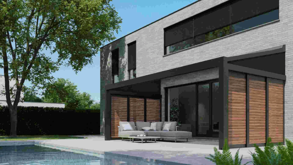 Wie liever een zachtere uitstraling heeft, komt vaak uit bij een pergola met oprolbaar doek. Met één eenvoudige beweging schakel je van zon naar schaduw of beschutting. Het doek is waterafstotend en windbestendig, waardoor je ook bij wisselvallig weer buiten kunt blijven zitten. Pergola’s zijn bovendien uitbreidbaar met glazen of houten schuifwanden en screens, wat ze bijzonder geschikt maakt om een beschutte buitenkamer te creëren die je doorheen de seizoenen kan gebruiken.